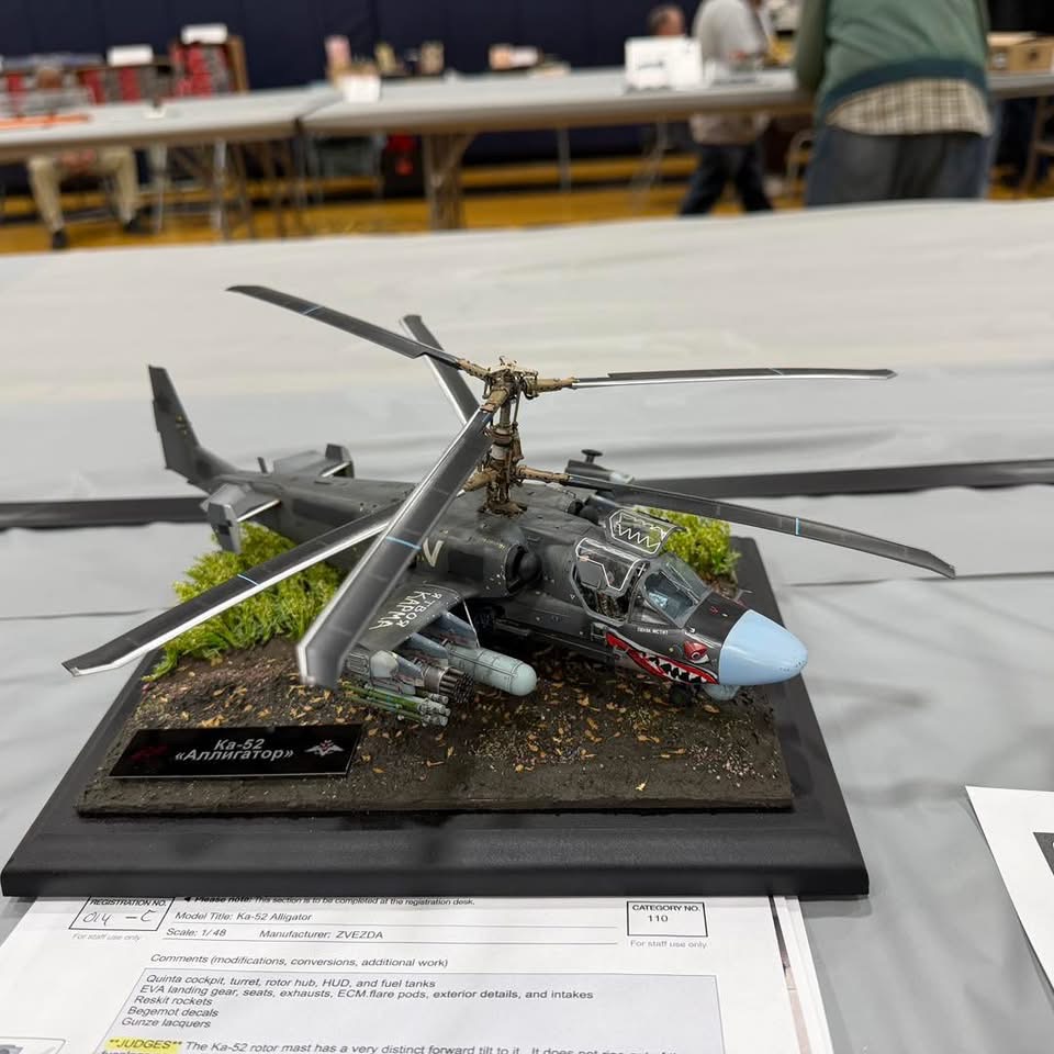 Here are some shots of my 1/48 Zvezda Ka-52 on the contest table at Mosquitocon last week.