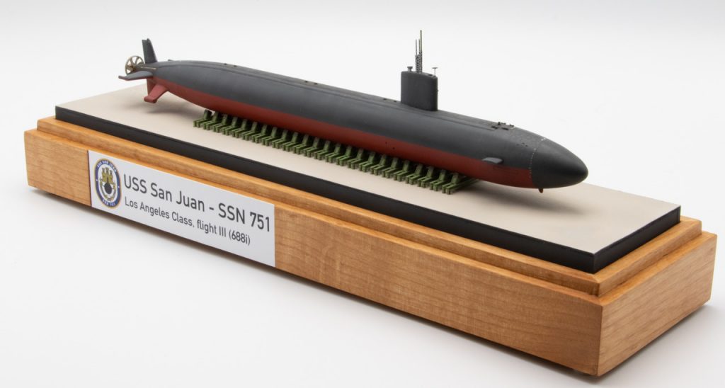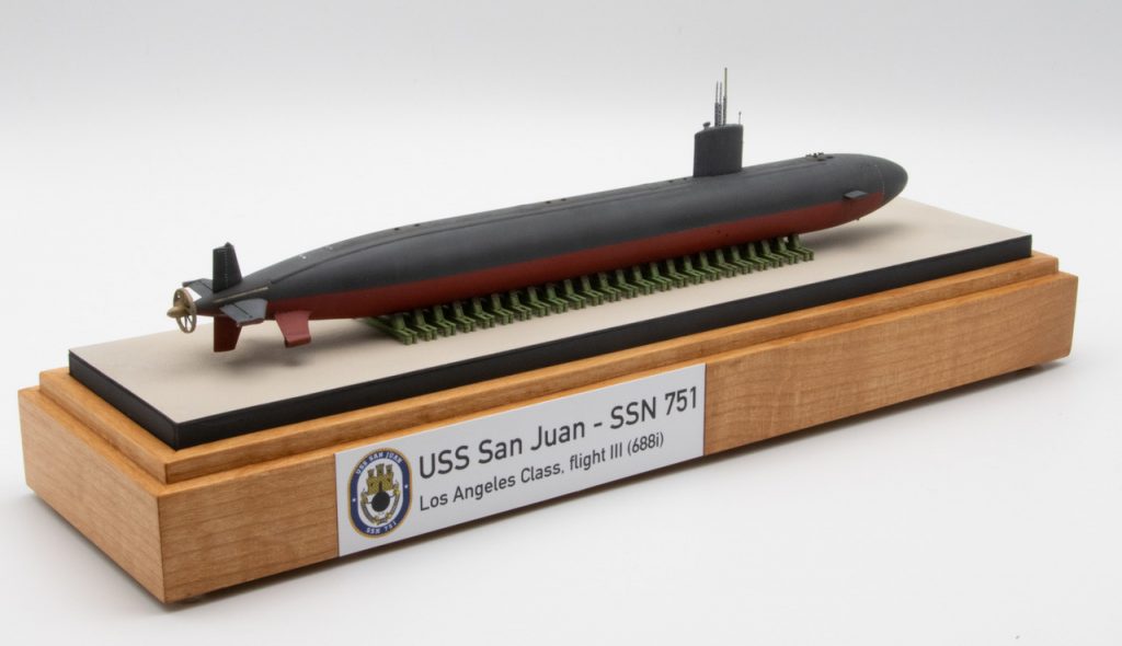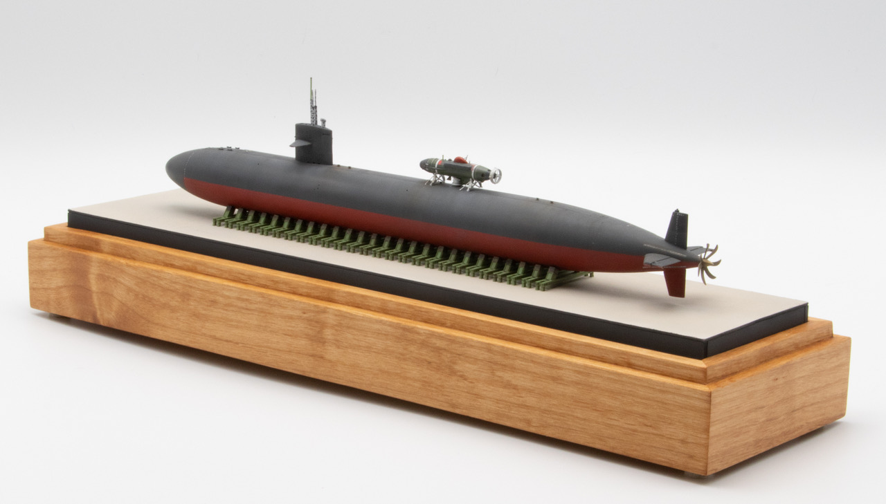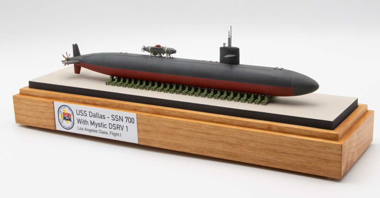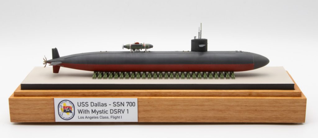 David presents two 1/350 scale Los Angeles Class attack submarines, first the Los Angeles Class III (688i) USS SAN JUAN SSN-751, and also the Los Angeles Class, Flight 1 USS DALLAS SSN-700 with MYSTIC DSRV-1 attached. Some fine work and fantastic display bases.