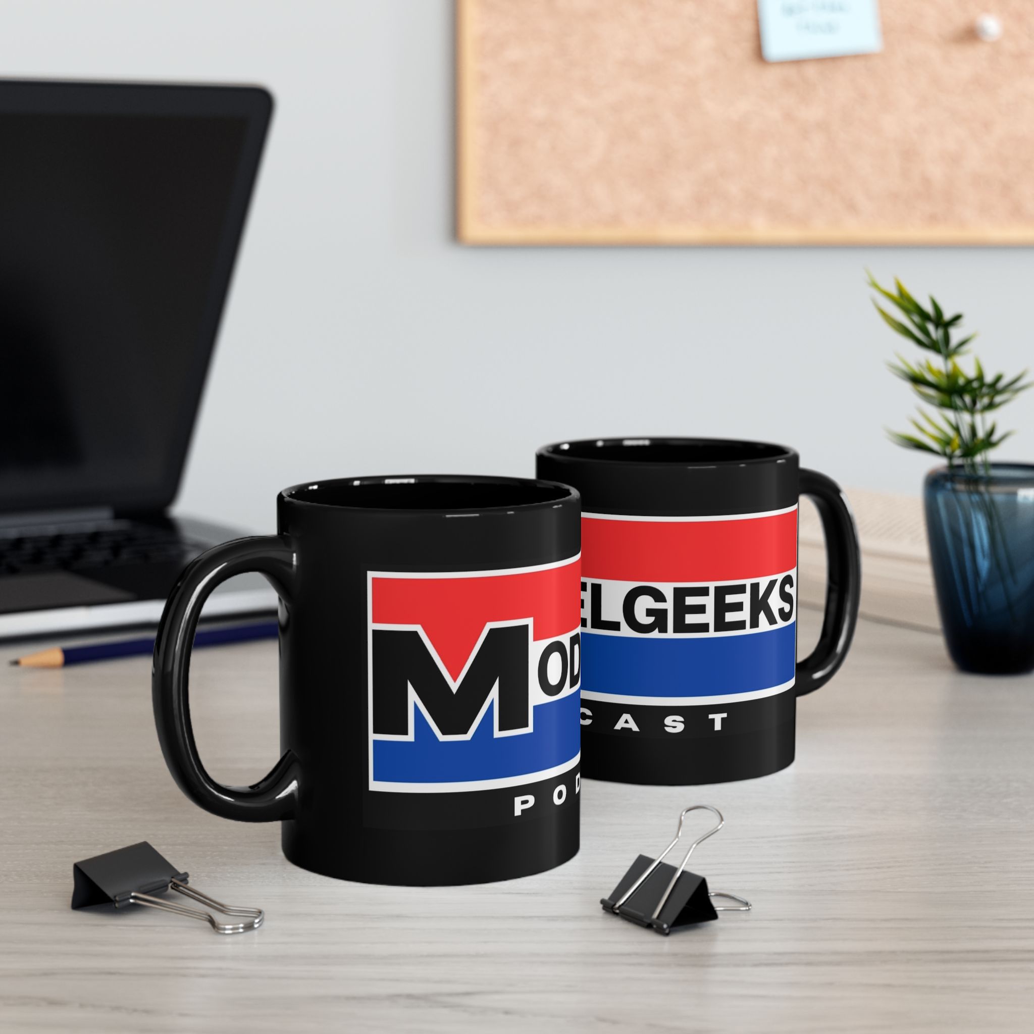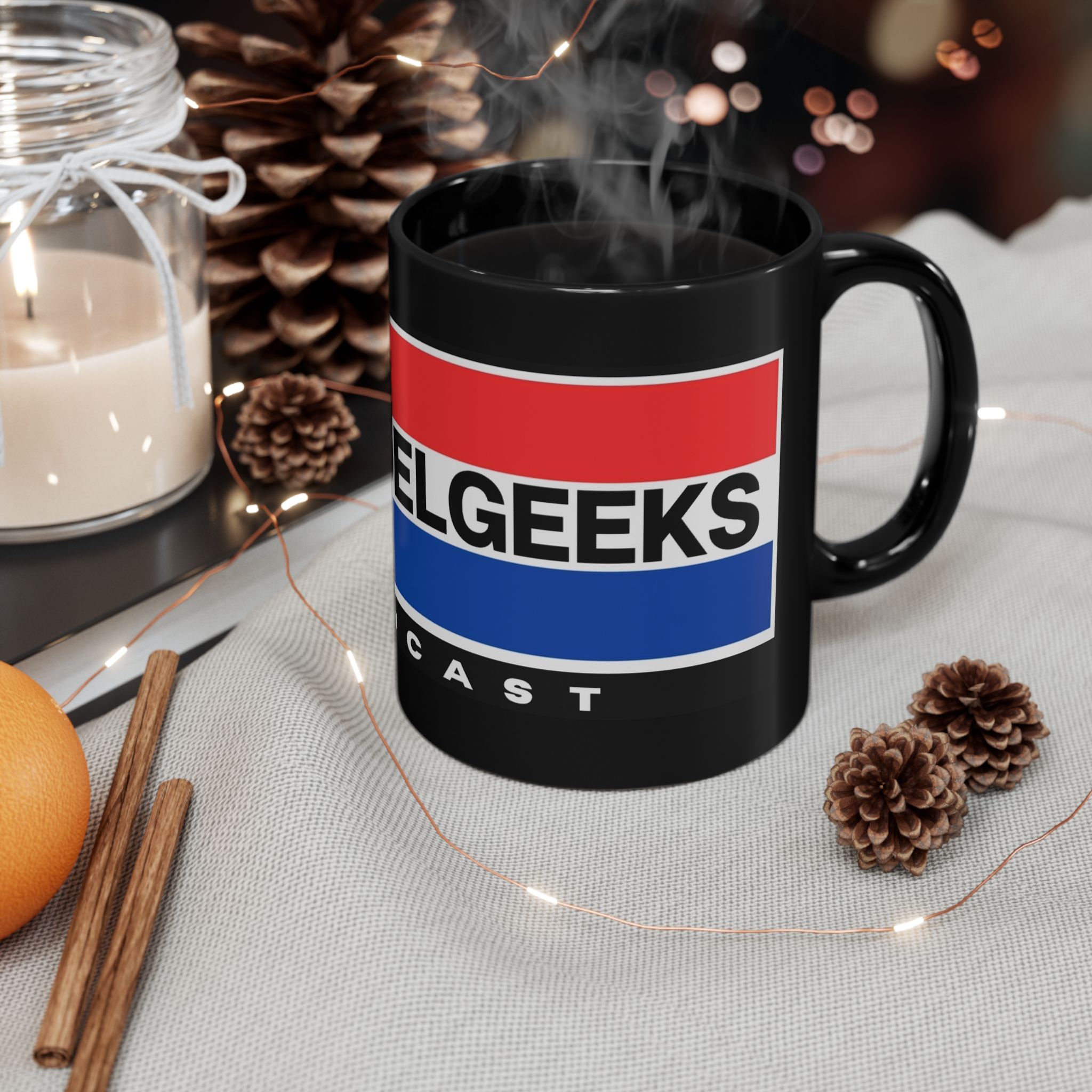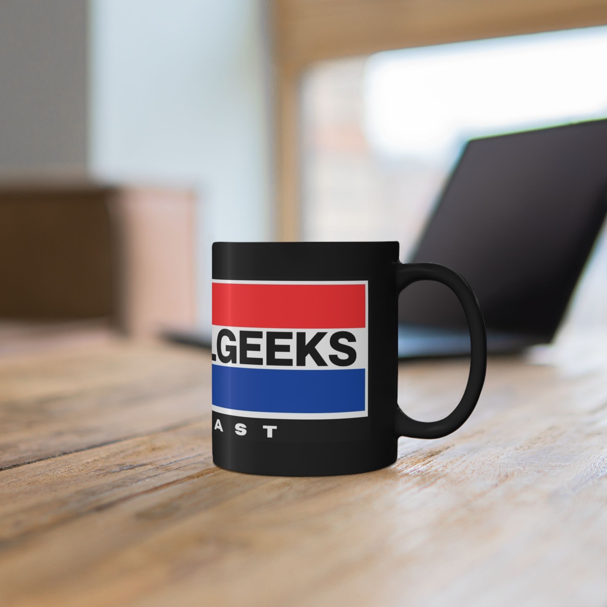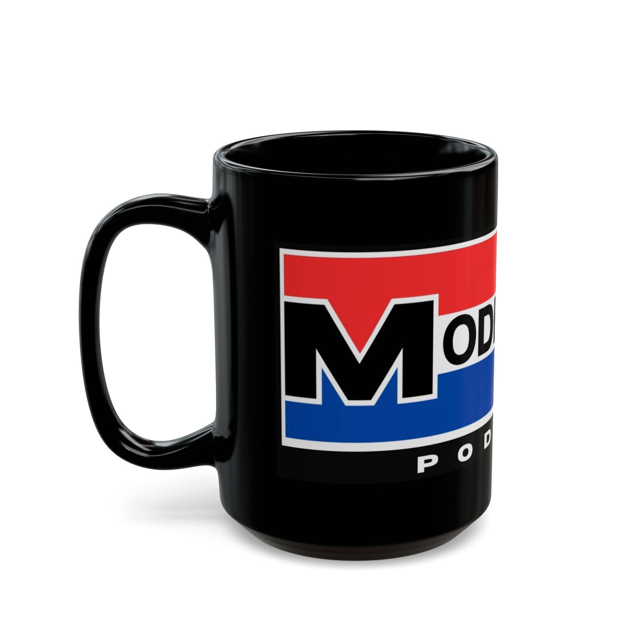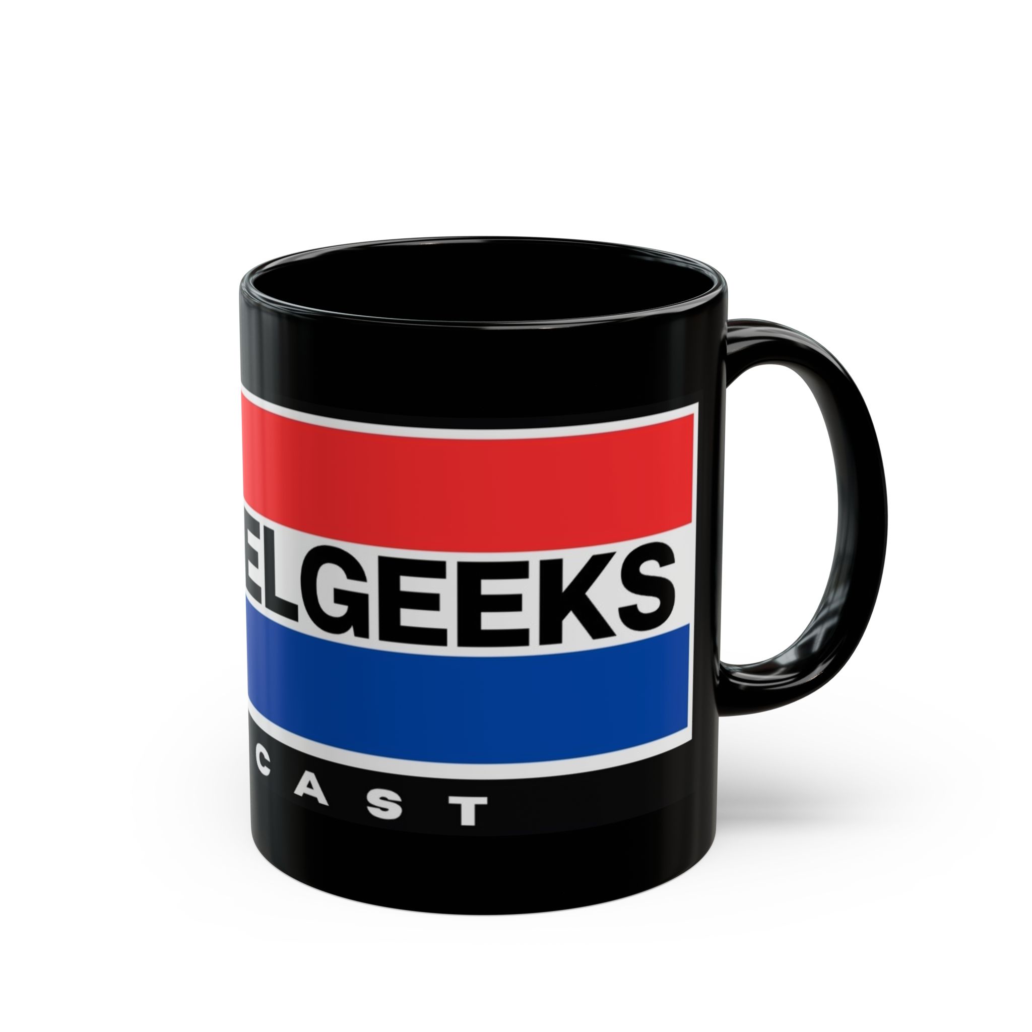This glossy black ceramic mug brings bold, vintage-inspired color to your morning routine. Rich red and blue bands wrap the mug with crisp, high-definition printing that resists fading, while the deep black glaze makes the design pop. The comfortable C-shaped handle sits just right in hand as you sip coffee, tea, or the late-night brew that fuels recording sessions. Built for everyday use, it stands up to microwave reheats and dishwasher cycles without losing vibrancy. It’s tactile, sturdy, and made to live on desks, studio shelves, or beside the mic during long podcast edits—adding a little studio flair to daily rituals.
